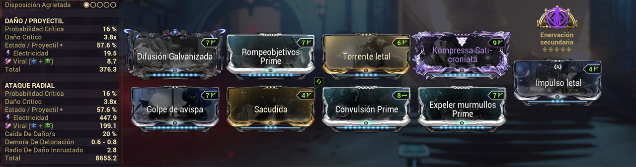 The truth is that it is one of the best secondary weapons to kill hordes since each bubble shot explodes upon impact, which expands the status effects. It is a good status weapon and in addition to doing critical damage thanks to the Arcane SECONDARY ENERVATE, which On Hit Increase Critical Chance by 10%. Resets after 6 Big Critical Hits